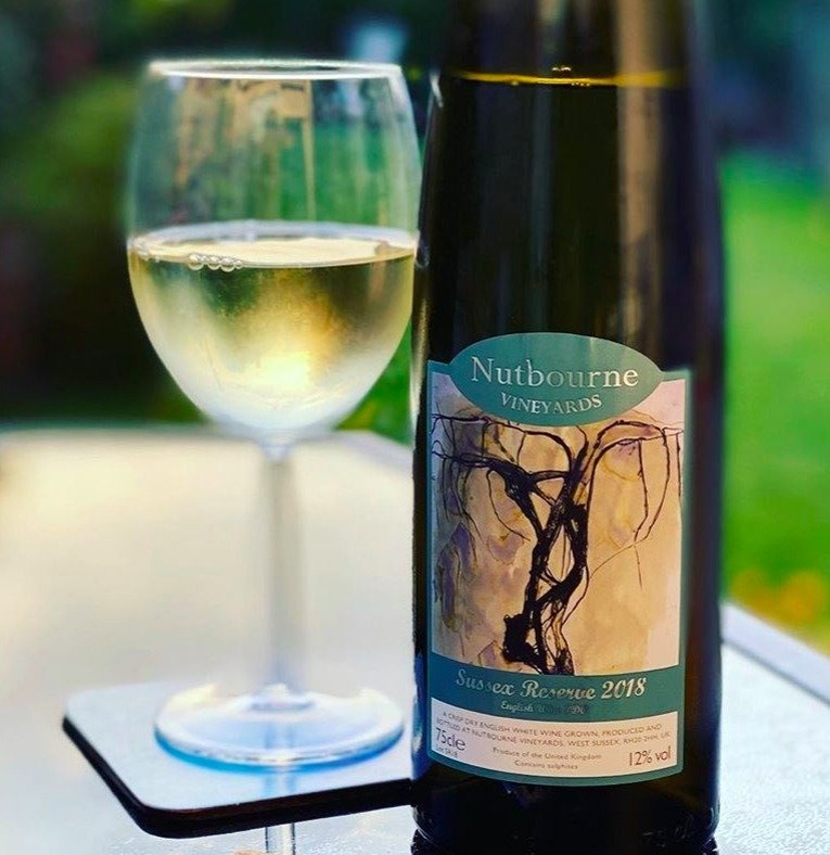 Sussex Reserve by Nutbourne Vineyards. The ‘field blend’ combines old vine Riesling-style German varietals with Pinot Noir to produce a crisp, dry white wine with great freshness and wild fruit flavours.